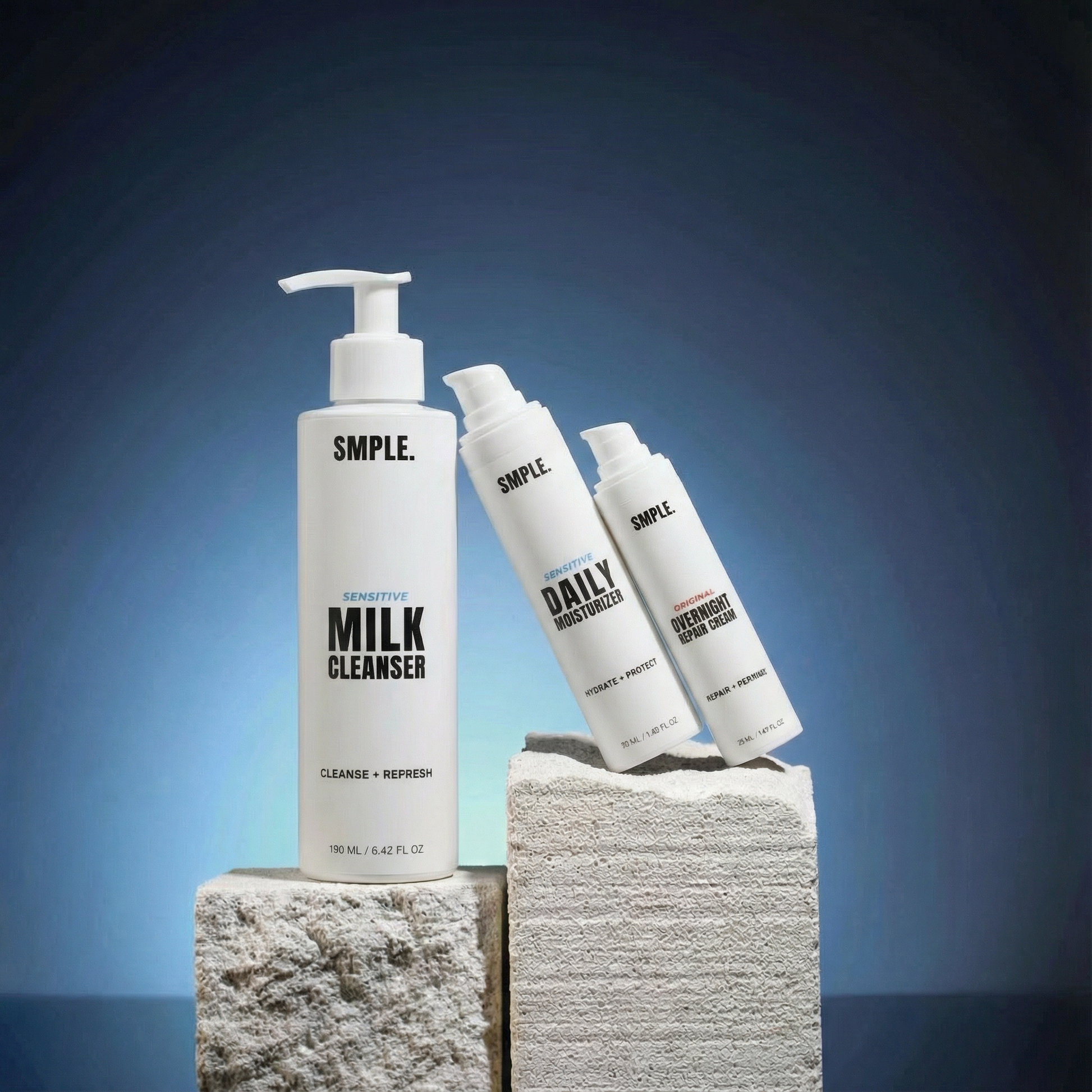 Morgen: Rens med Gentle Cleansing Milk → Påfør Sensitive Skin Moisturiser